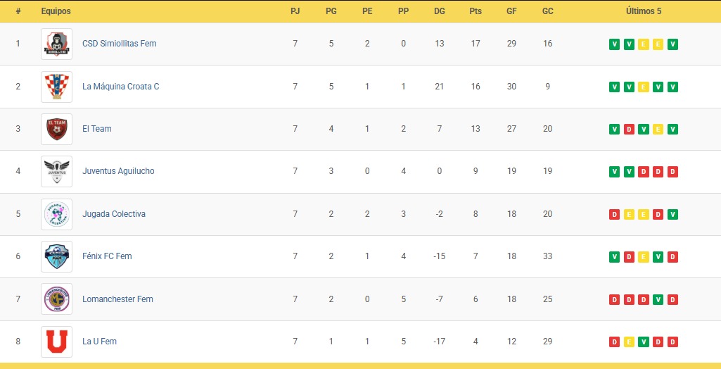 PJ: Partidos jugados / PG: Partidos ganados / PE: Partidos empatados / PP: Partidos perdidos / DG: Diferencia de goles / Ptos: Puntos / GF: Goles a favor / GC: Goles en contra