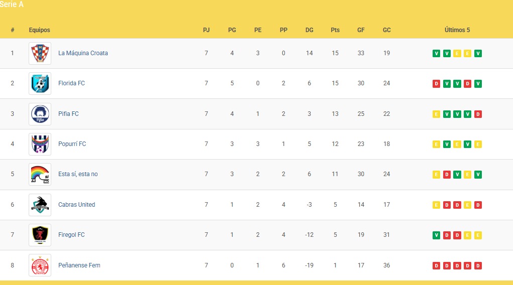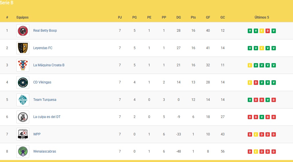 PJ: Partidos jugados / PG: Partidos ganados / PE: Partidos empatados / PP: Partidos perdidos / DG: Diferencia de goles / Ptos: Puntos / GF: Goles a favor / GC: Goles en contra